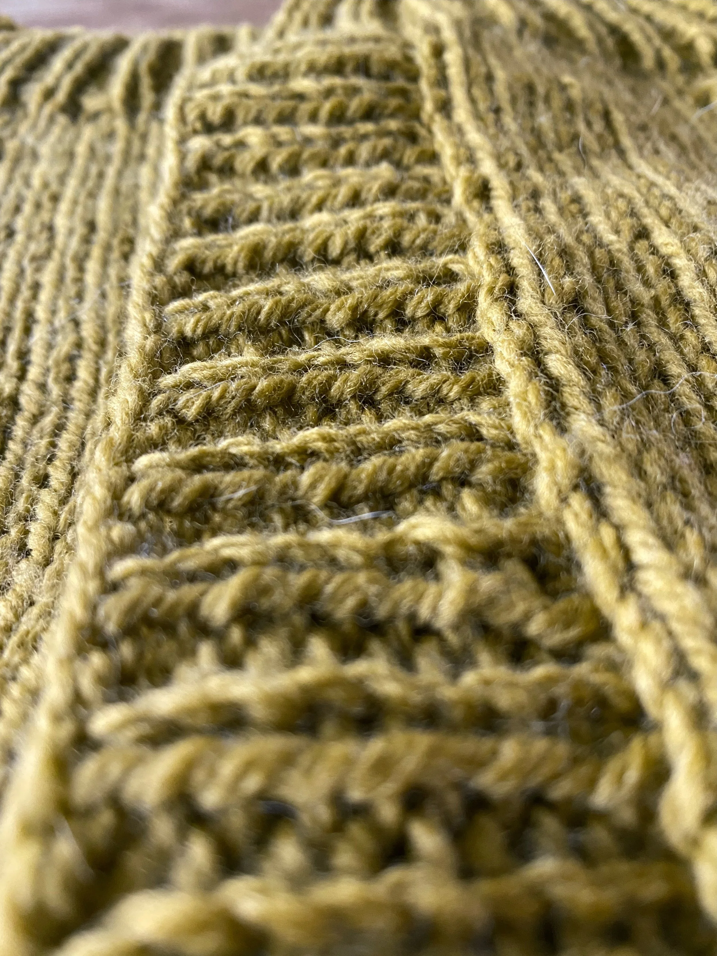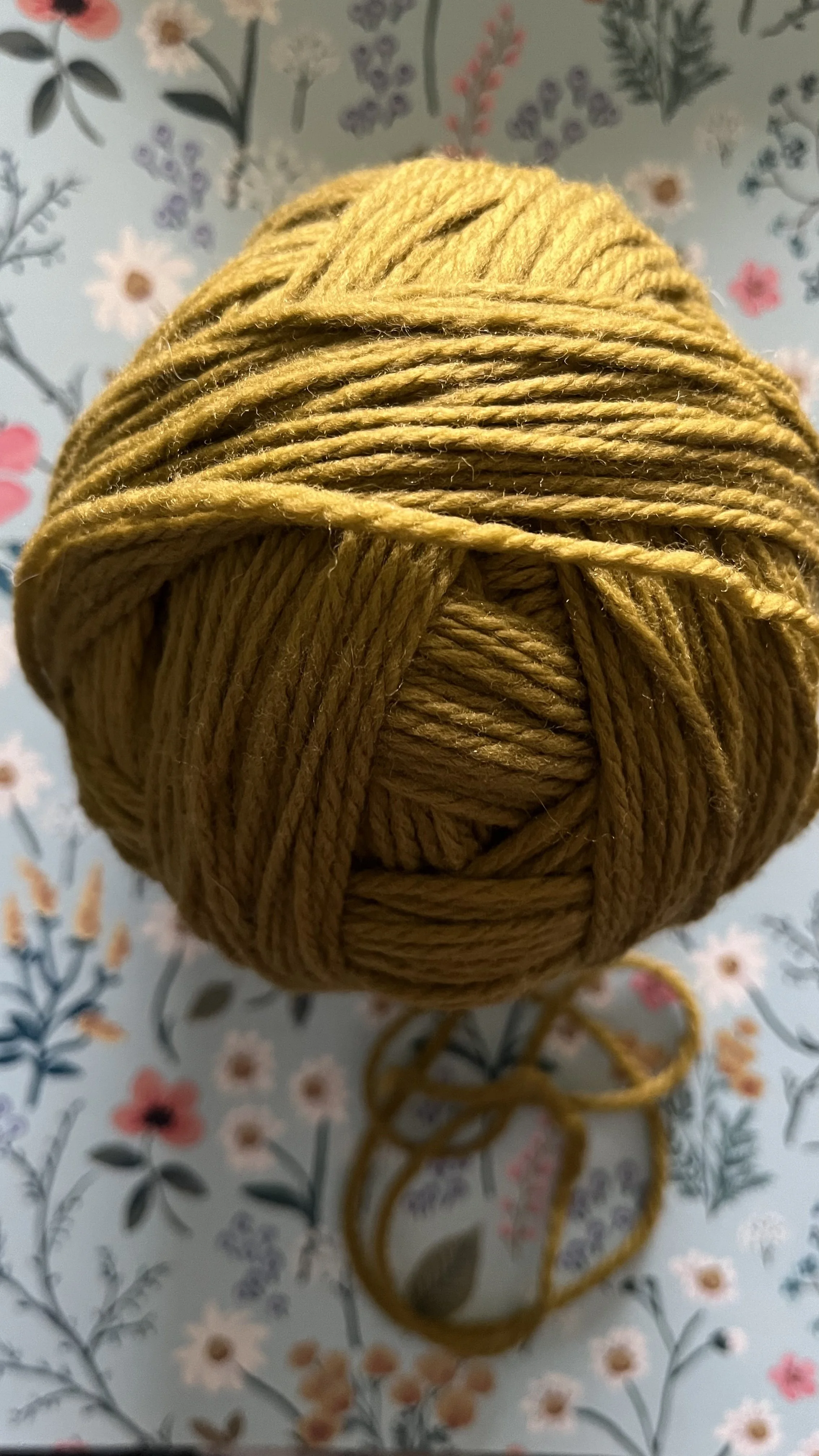 Some time ago I purchased the worsted weight Home yarn in the color Field, a green-gold color that reminds me of all the happiness and joy of being outside. The 3-ply yarn is round and soft, happy to be worked into my summer sweater! At 230 yards (210 m) per 110 gram skein, I used 3 full skeins and 26 grams of the 4th one.