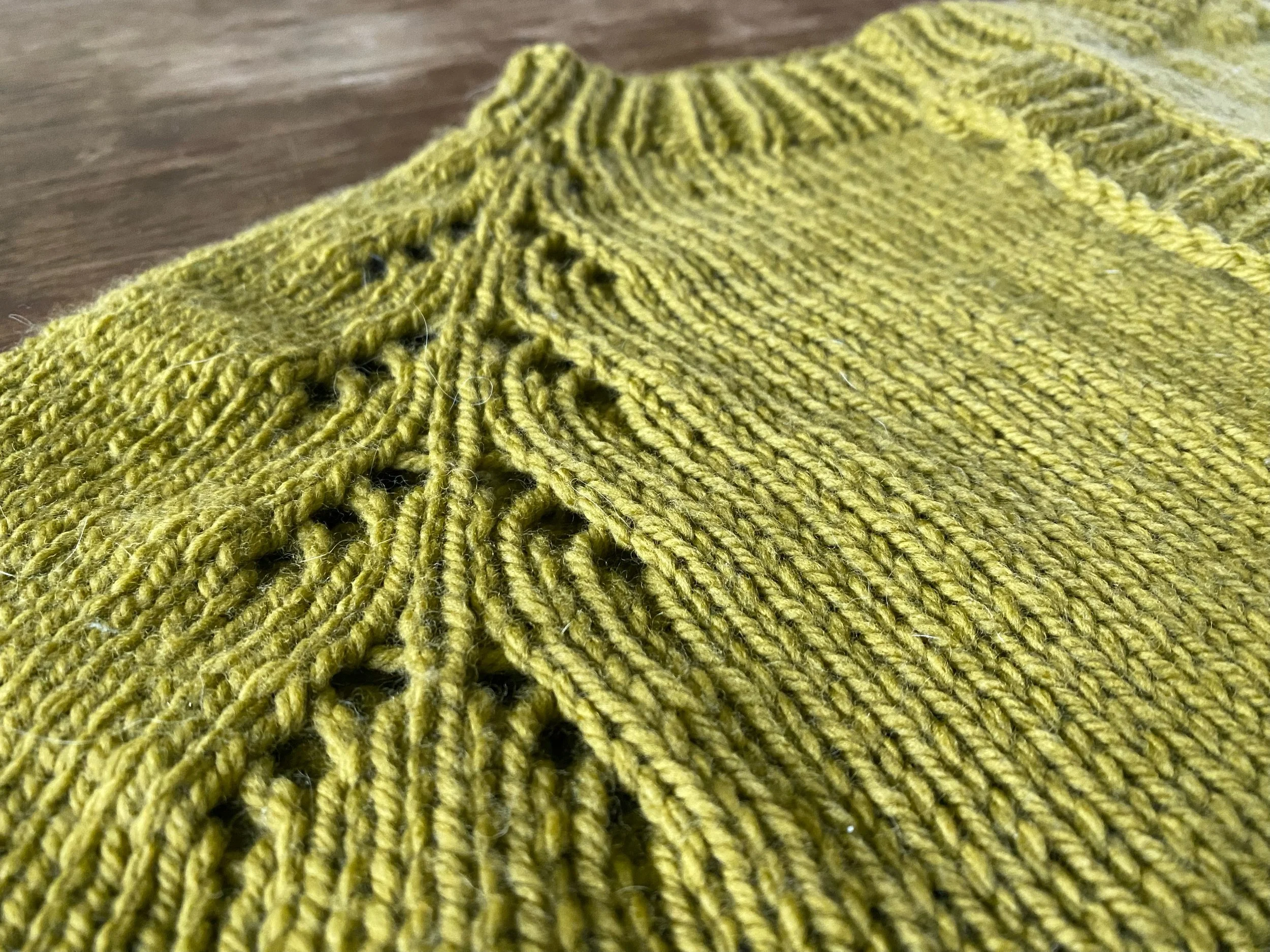 The knitting was rhythmic and relaxing. I love purling, so those rows were pleasant for me. The aforementioned raglan eyelet detail is simple enough for new-to-sweater-knitting knitters to give it a try, and those with more sweater knitting in their repertoire will enjoy the break in stockinette.