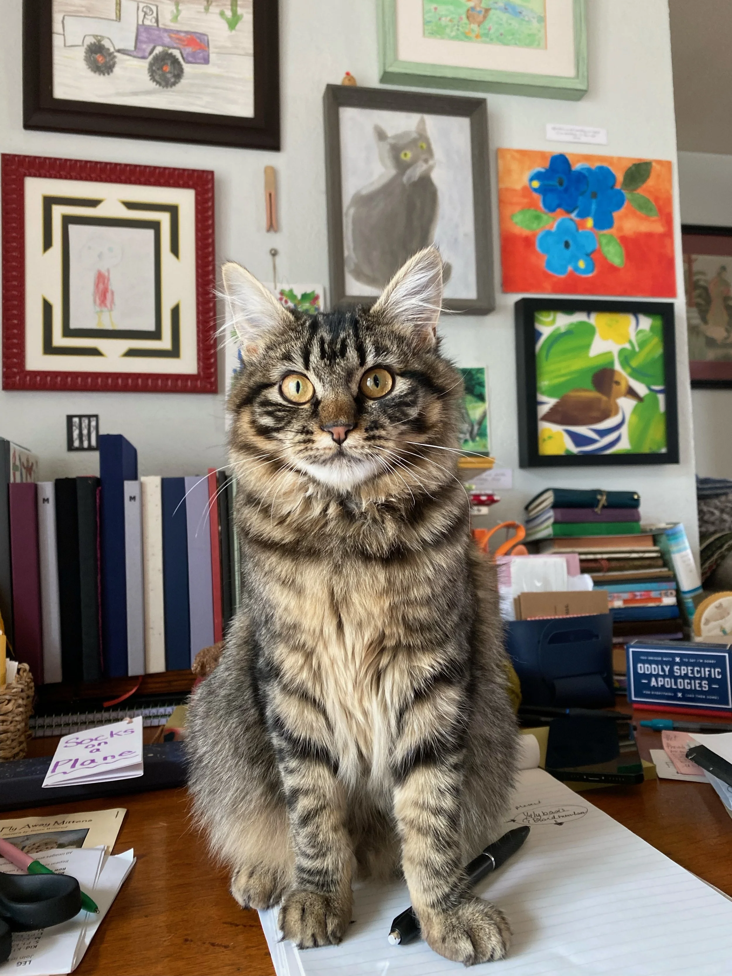 {I have not introduced you to Alice. She is our newest family member; my daughter adopted her. She loves my desk.}
